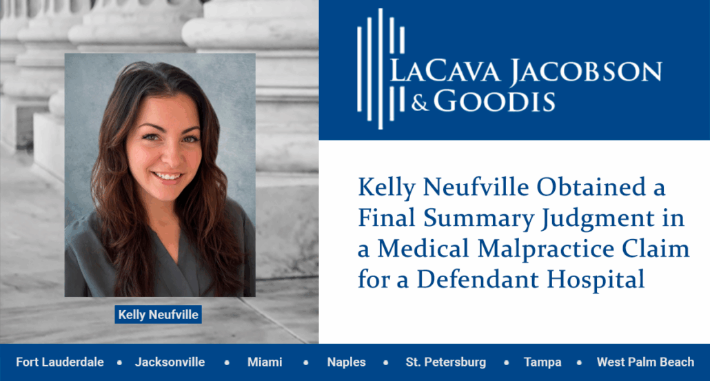 Kelly Neufville Obtained a Final Summary Judgment in a Medical Malpractice Claim for a Hospital